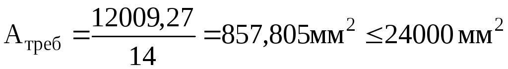 Определяем требуемую площадь подошвы подкладного листа из условия прочности бетона фундамента: