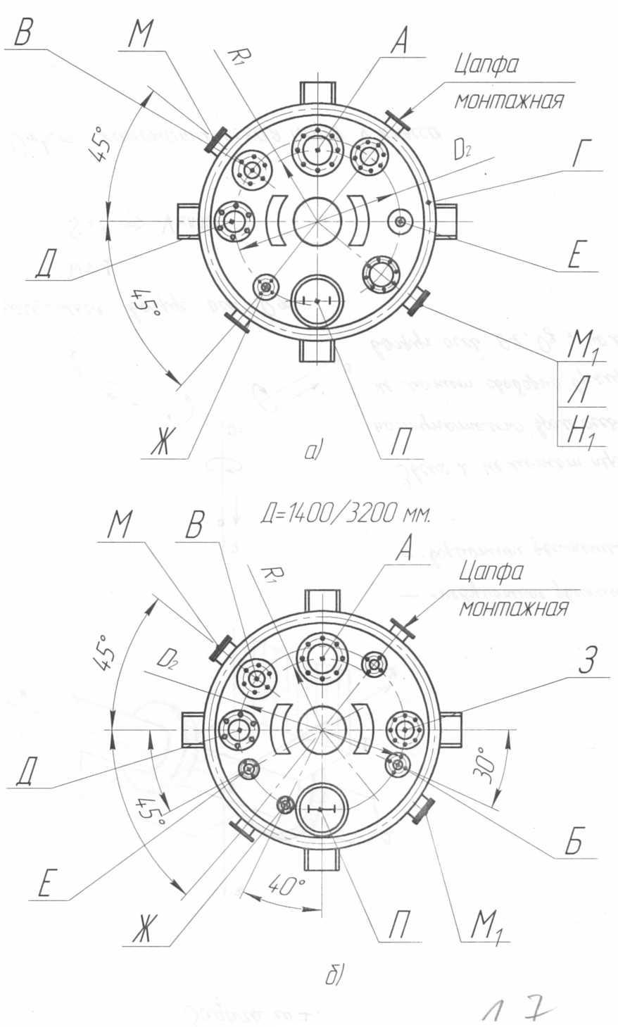 Рис.1.7. Расположение штуцеров для корпусов с эллиптическими крышками