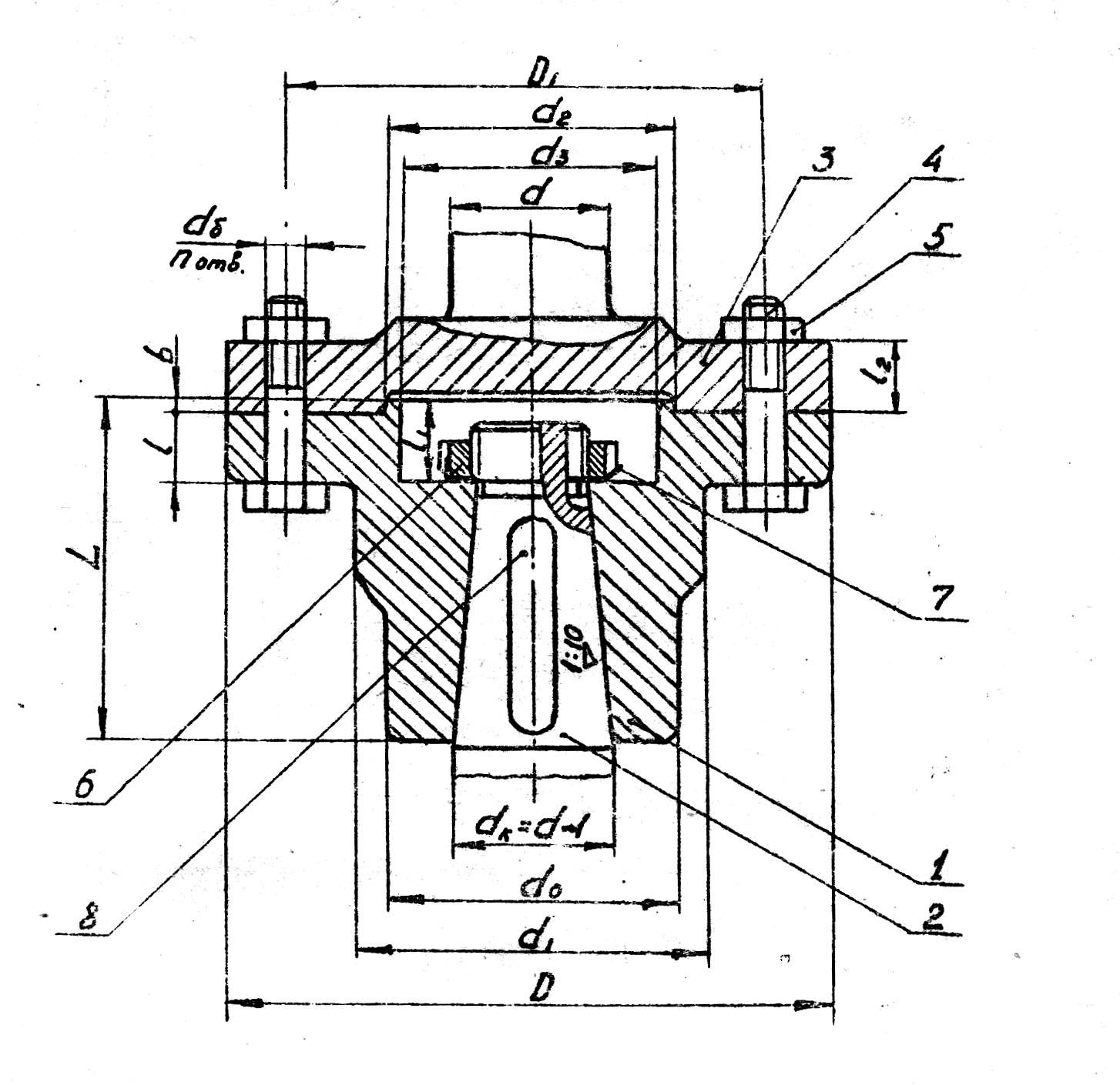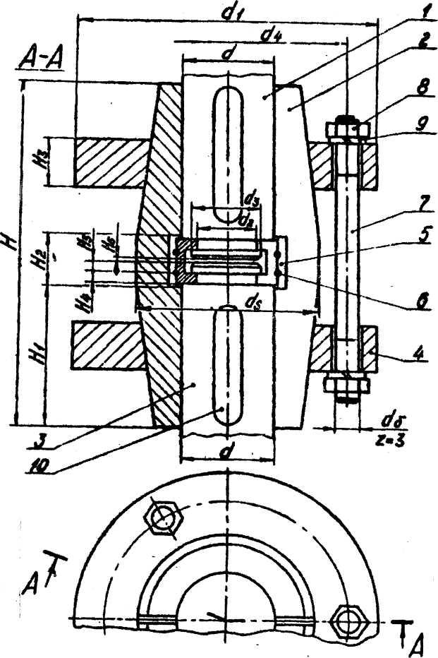 6- кольцо упругое; 7-шпилька; 8-гайка; 9- шайба; 10-шпонка