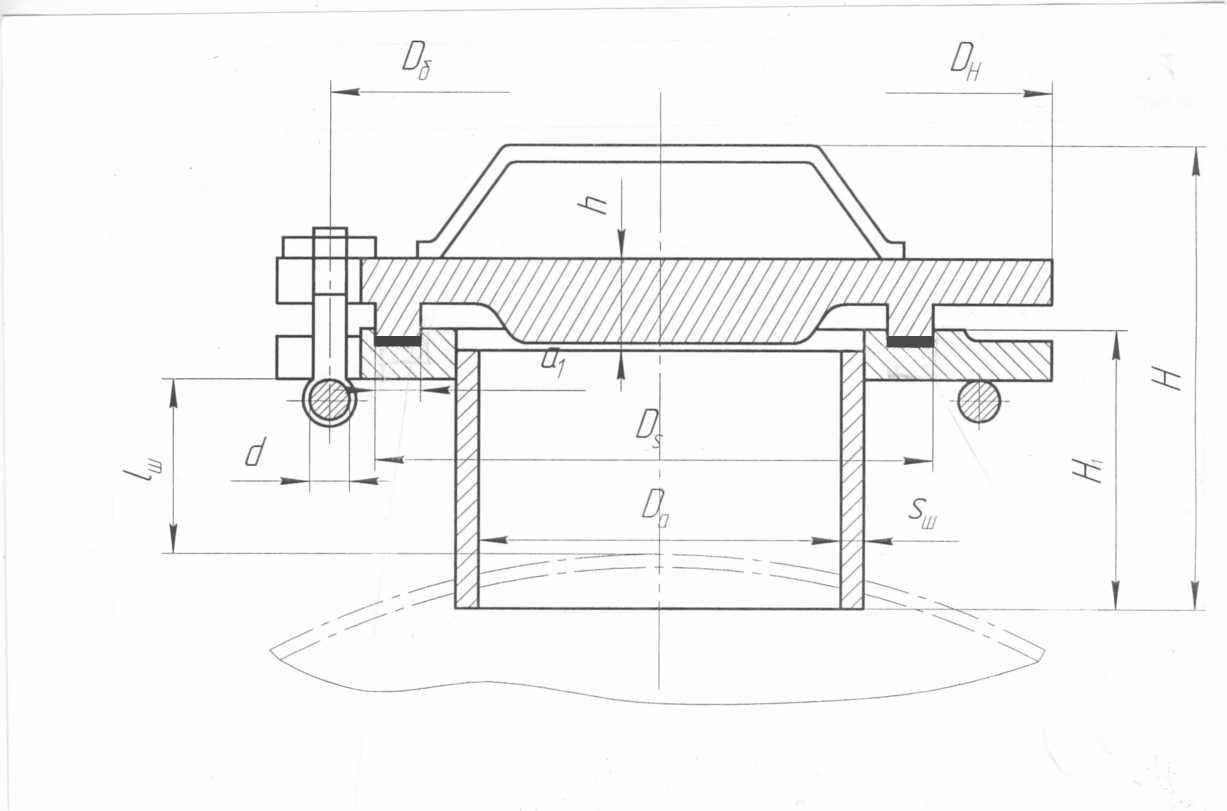 Рис. 1.8. Люк с плоской крышкой и откидными болтами на РИ = 1,6 МПа