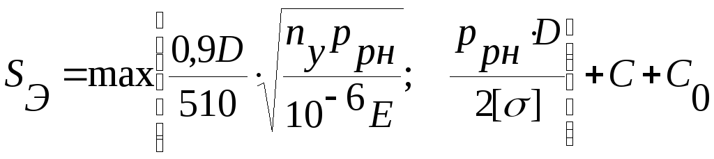 После предварительного определения толщины стенки обечайки проверяют допускаемое наружное давление по формуле