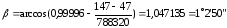 Уточняем значения угла α2, стрелочного угла β и ординату в корне uп: