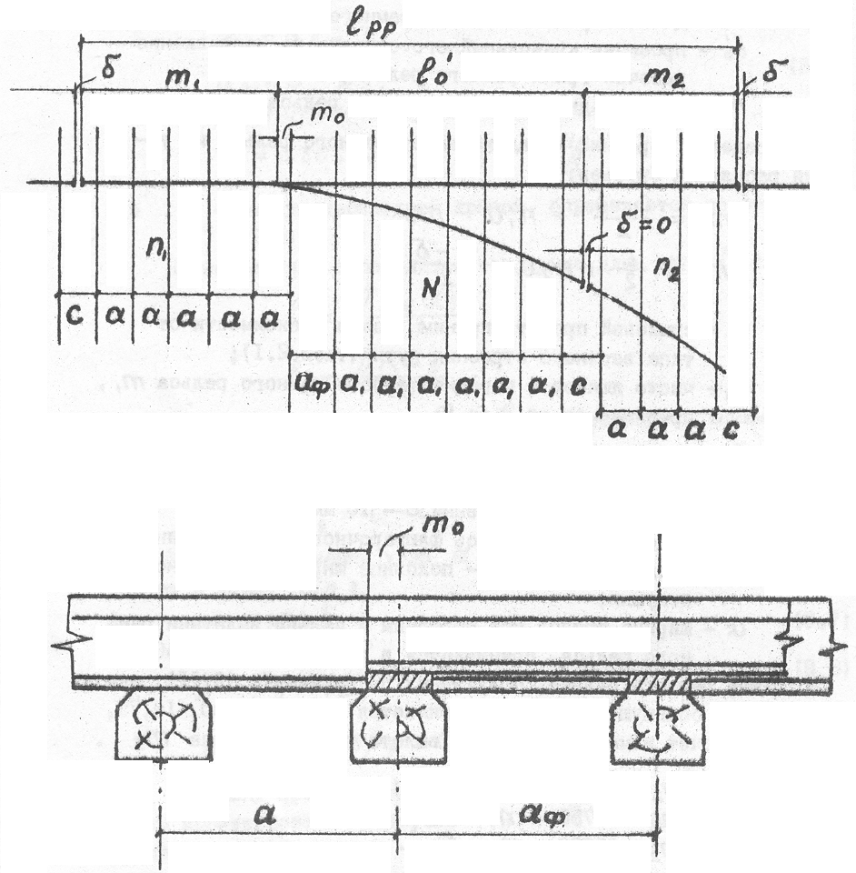 Стыки в переднем, заднем вылетах рамного рельса и корне остряка устраиваются на весу со стандартным пролетом “с”.