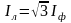 линейные и фазные токи связаны соотношением