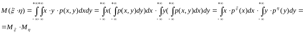 6. Если случайные величины ξ и η – независимы, то мат. ожидание от произведения случайных величин равно произведению их мат. ожиданий.