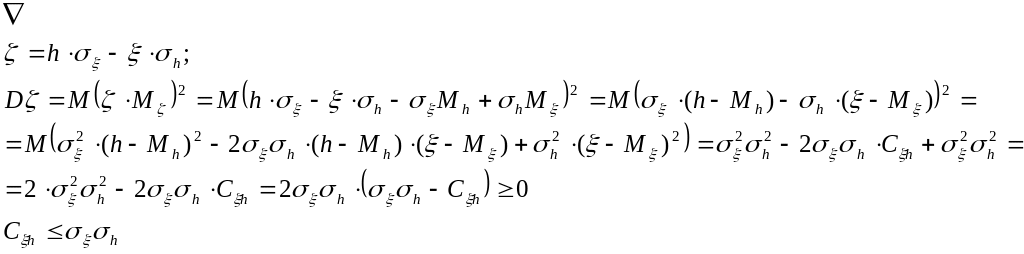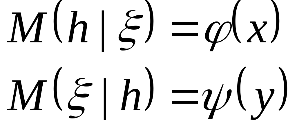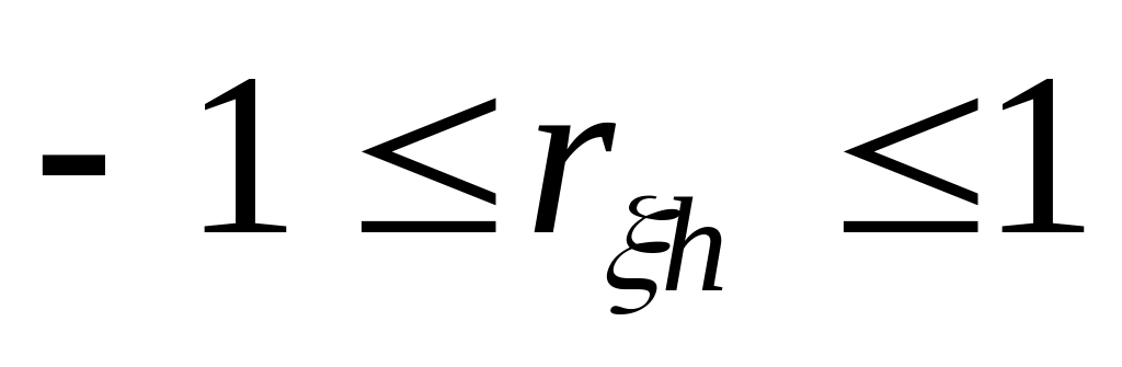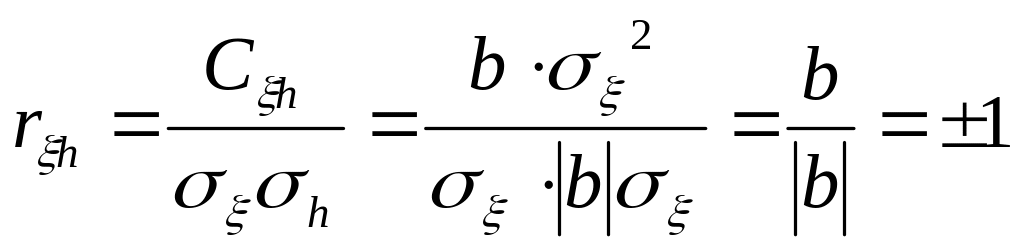 Если линейная зависимость между ξ и h носит возрастающий характер, тогда коэффициент корреляции равен 1. Если линейная зависимость между ξ и h носит убывающмй характер, тогда коэффициент корреляции равен -1.