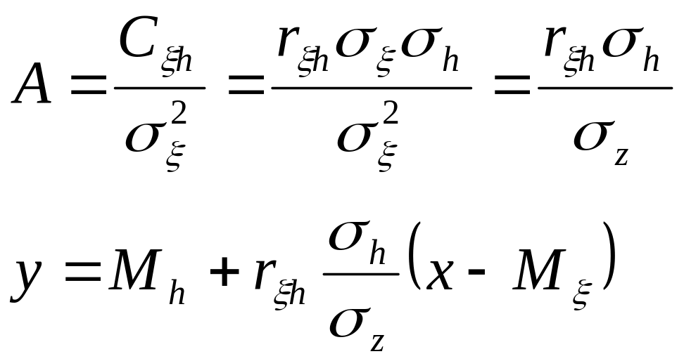 Если модуль коэффициента корреляции равен 1, т.е. ξ и h линейно-зависимы, то оба уравнения регрессии совпадают между собой и с самим уравнением линейной зависимости ξ и h