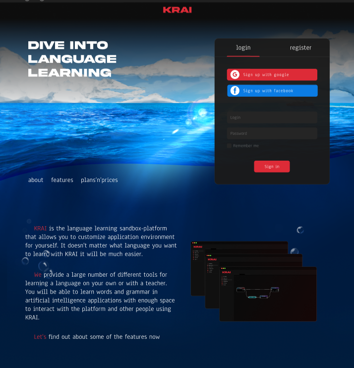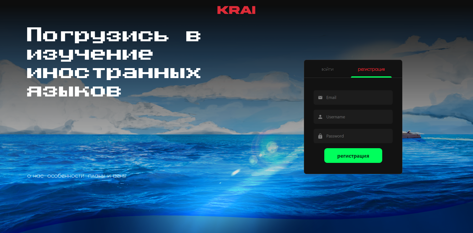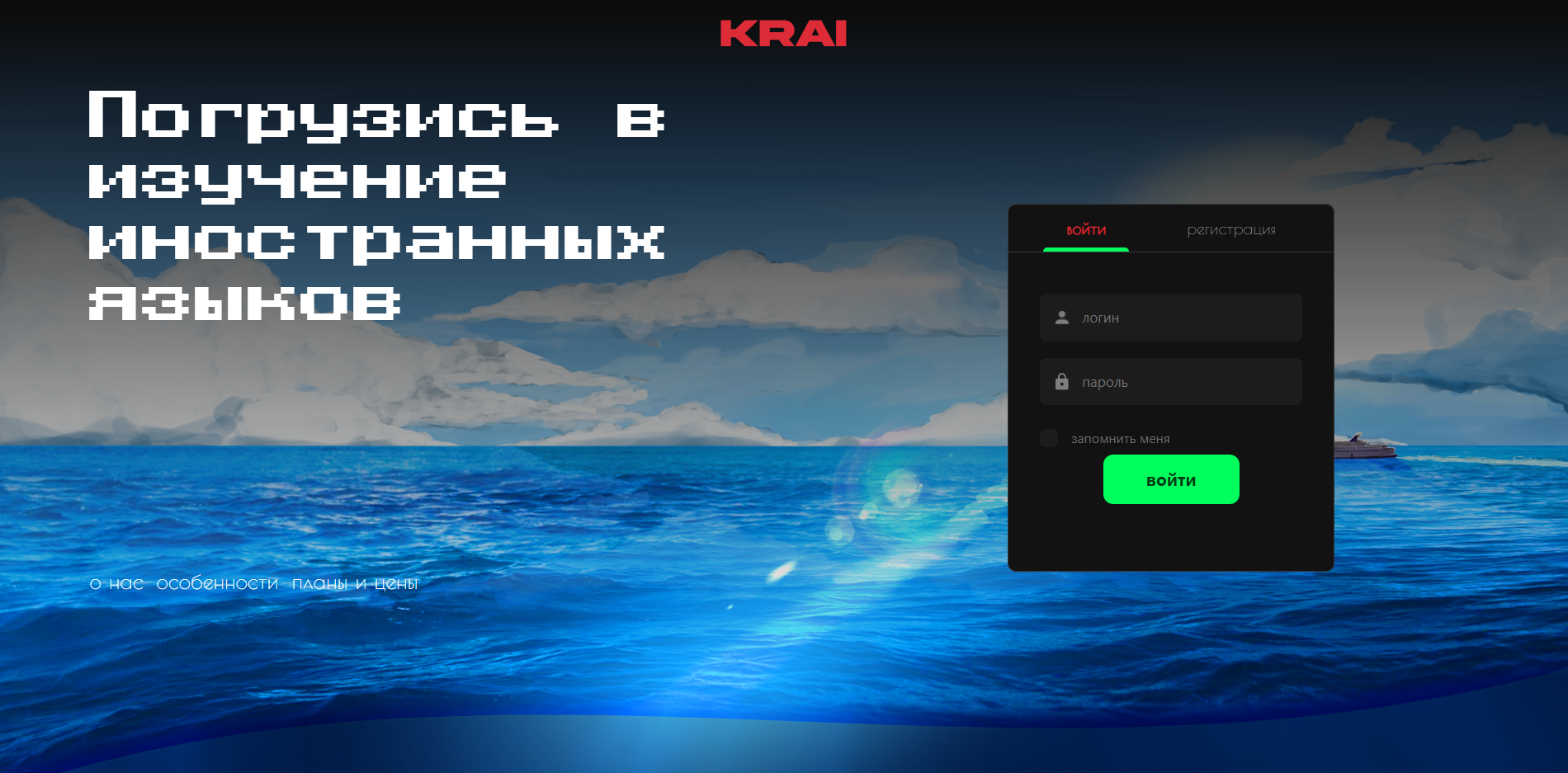 Сайт ориентирован на аудиторию, желающую изучать иностранные языки на платформе KRAI.