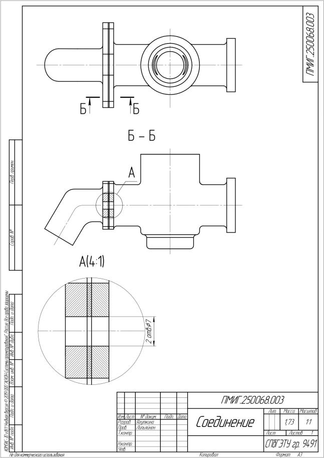 Болтовое (корпуса 1 и колена 6 через прокладку 7).