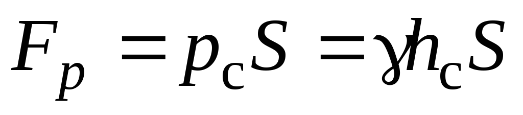 где hc – расстояние по вертикали от центра тяжести стенки до свободной поверхности жидкости.