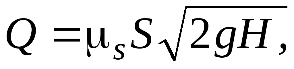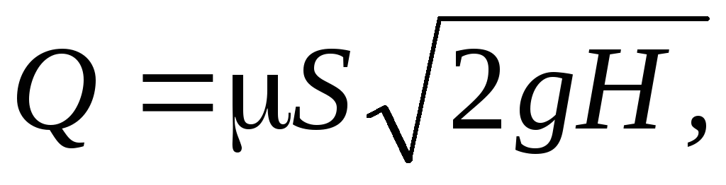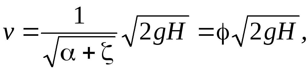 В инженерной практике часто приходится решать задачи по определению времени, скорости, расхода при истечении жидкости через отверстия и насадки. Действительная скорость истечения при постоянном напоре Н равна