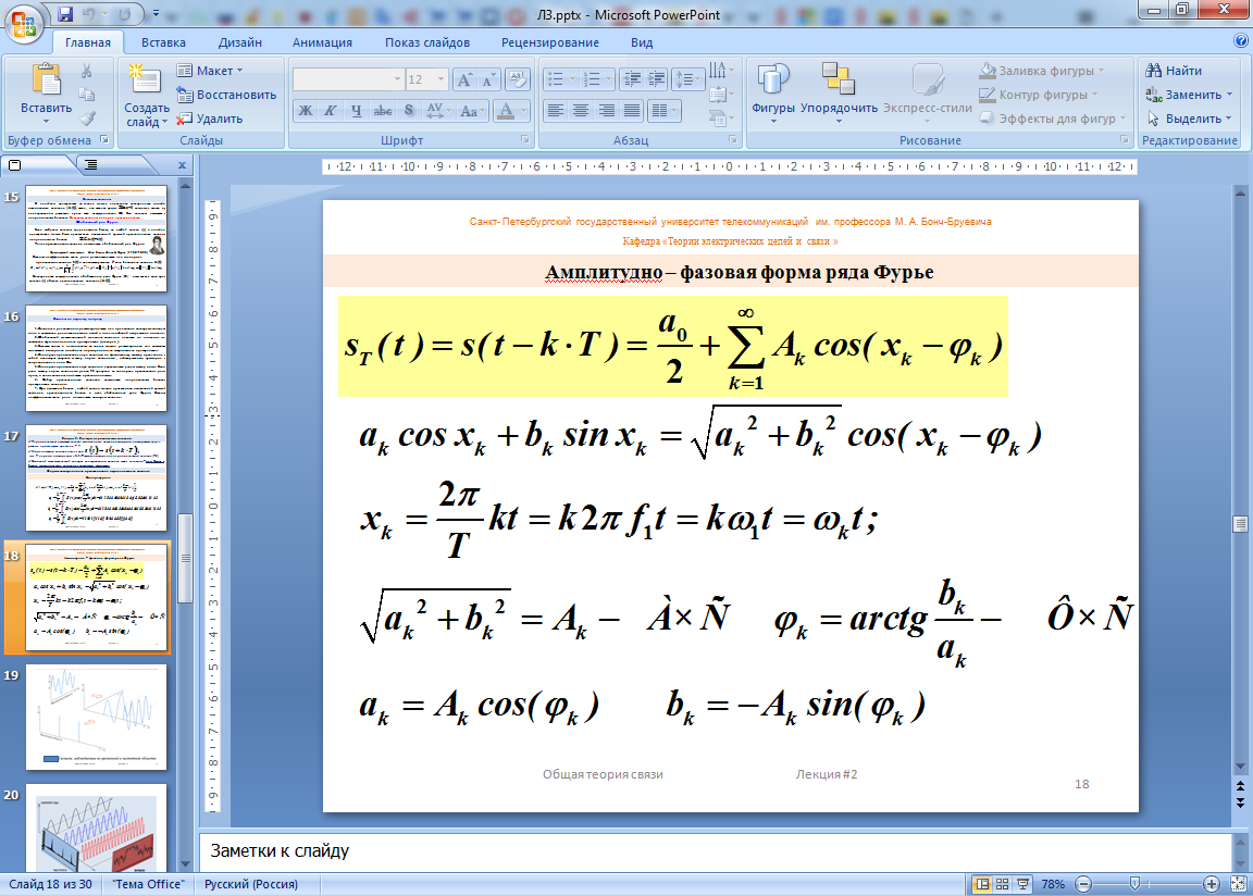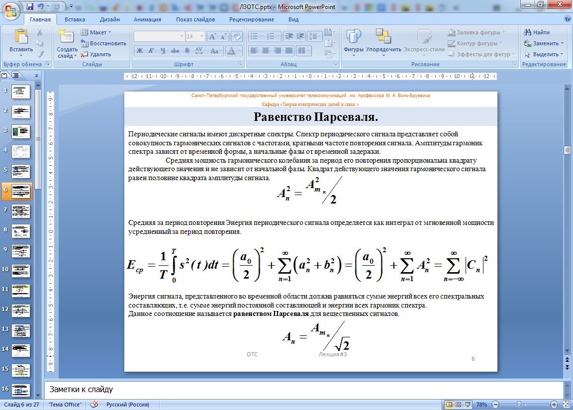 18. Средняя энергия периодического сигнала. Равенство Парсеваля для вещественных сигналов.