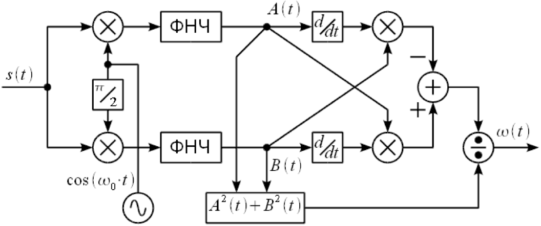 Синфазная и квадратурная компоненты получены согласно структурной схеме рисунка 2, а сигнал на выходе интегратора — ломаная линия как показано на рисунках 3 и 11.