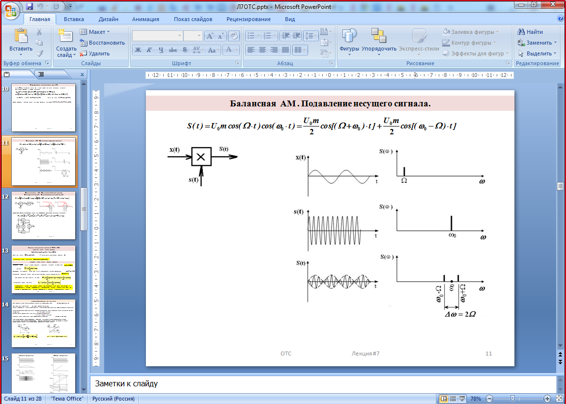 Такой сигнал можно представить в виде суммы двух АМн сигналов, с противофазными несущими 0o и 180o: .