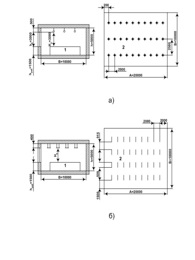 а) при размещении осветительных приборов параллельными рядами: L/HР = 1,4 - 1,8