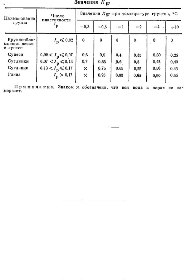 – весовое содержание незамерзшей воды, долей единицы, определяется по формуле для температуры:
