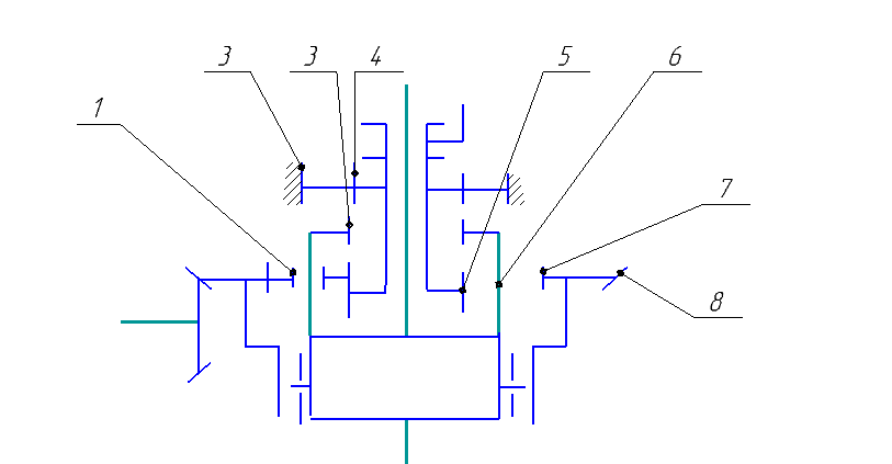 Двухступенчатая главная передача может быть получена за счет установки в ней блокируемого центрального ряда. Схема такой передачи представлена на рисунке 6.1. На указанном рисунке буквой Д обозначен механизм дифференциала.