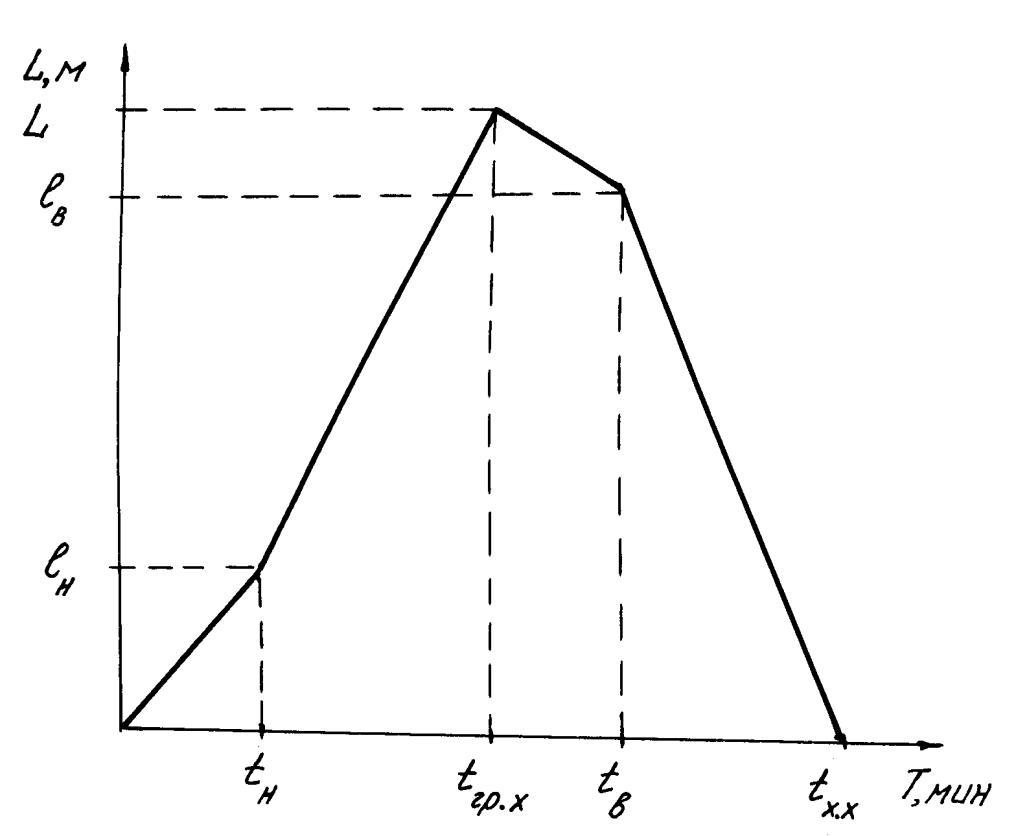 tх.х = (L – lв) / Vx.х ,