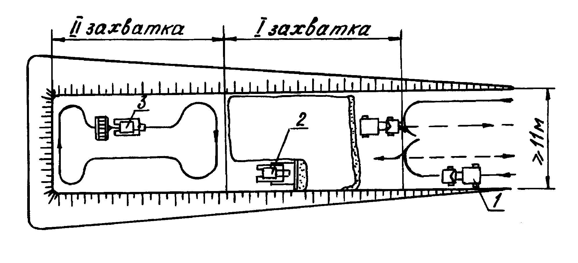 Когда ширина насыпи уменьшается до 11 м, участок насыпи разби-вается на захватки длиной 30–50 м (рис. 3.5).