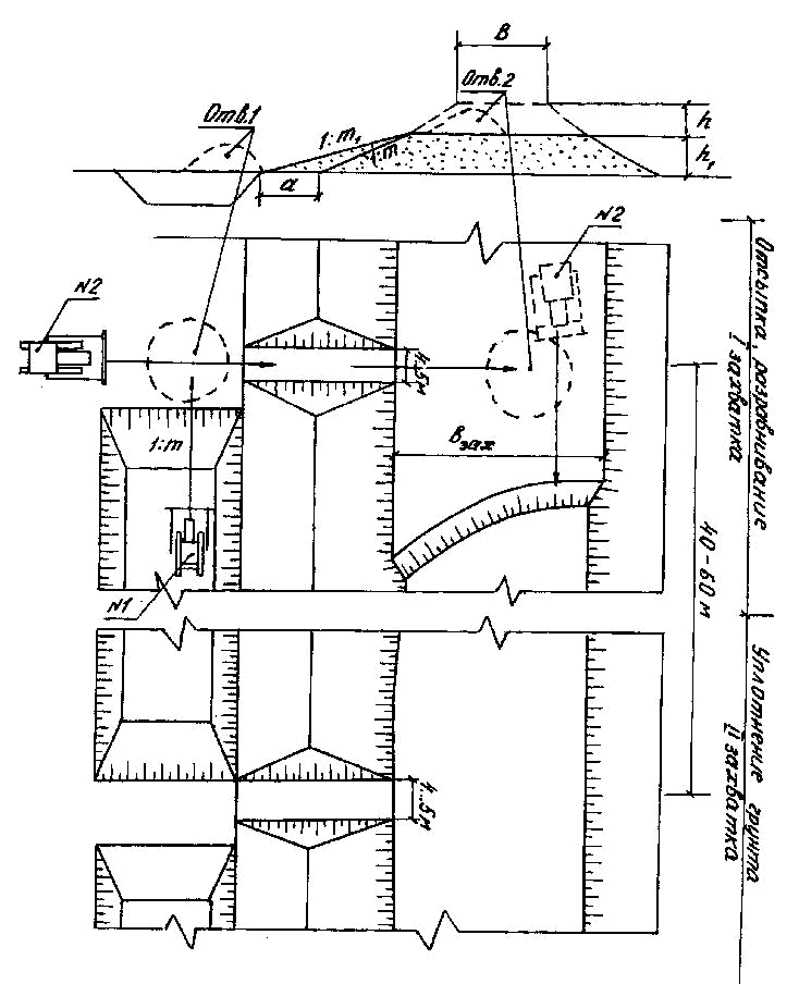 Ориентировочно можно принимать, что средняя дальность транс-портировки грунта из промежуточного отвала 1 в промежуточный отвал 2