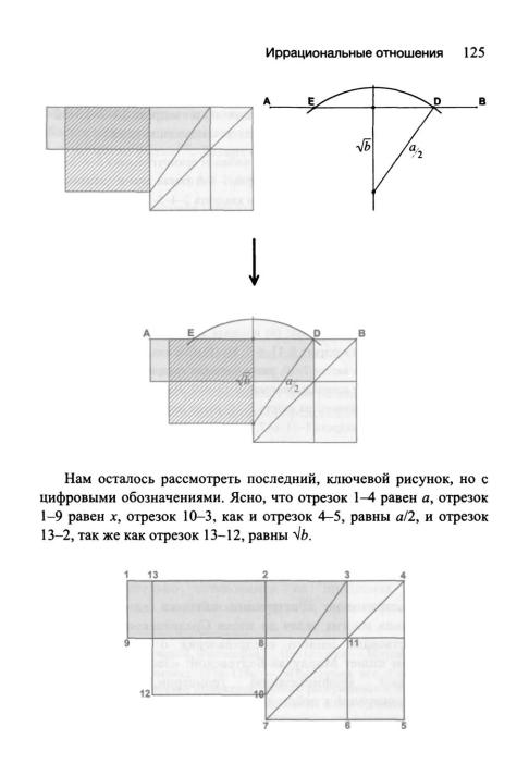 Демонстрируя трудности чисто геометрических методов, Бурбаки приводит следующий пример. В X книге «Начал» Евклид «рассматривает выражения, получаемые путем сочетания несколь ких радикалов, как, например, Д/Л/Я±Л/£ (где а и b — рациональные), приводит условия, при которых эти выражения являются иррацио нальными, разбивает их на многочисленные категории (доказывая, что они отличны друг от друга) и изучает алгебраические соотношения между этими различными иррациональностями,