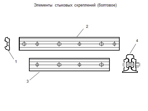 1,2,3 – элементы рельса; 4- скоба