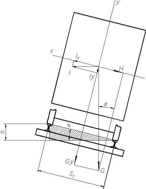 При устройстве возвышения происходит наклон экипажа, вследствие чего появляется горизонтальная составляющая силы собственного веса, направленная внутрь кривой: