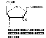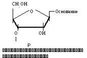 Основная цепь РНК, таким образом, построена из чередующихся остатков сахара и фосфата и может быть изображена схемой