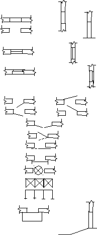 5. Вычерчивают условные обозначения лестниц, санитарно-тех-нического и прочего оборудования, а также указывают направление открывания дверей. На планах промышленных зданий наносят оси рельсовых путей и монорельсов.