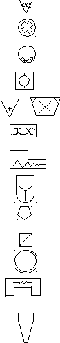 Трубопроводная арматура предназначена для закрытия и открытия трубопровода, изменения гидравлического сопротивления и, тем самым для изменения скорости потока среды по трубопроводу. Условные обозначения трубопроводной арматуры приведены в табл. 5, а условные обозначения другого оборудования – в табл. 6–8.
