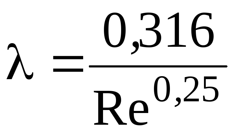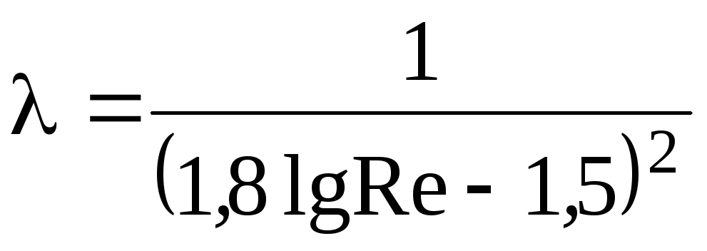 Во многих случаях (например, при расчете трубопроводов на ЭВМ) предпочтительней пользоваться для определения коэффициента λ не графиком Мурина, а расчетными зависимостями, обобщающими цифровые значения этого графика. Так, для зоны гладкого трения рекомендуют формулу Блазиуса