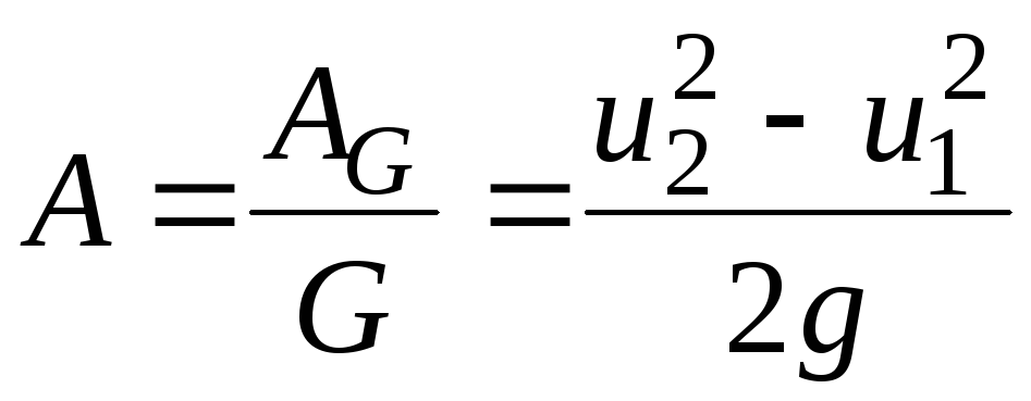 Удельная работа (отнесенная к единице веса жидкости) равна удельной энергии, приобретаемой жидкостью в насосе, и составляет