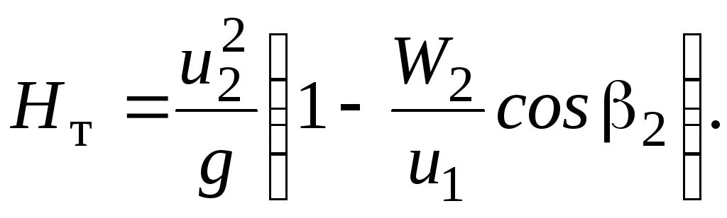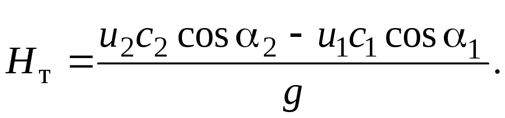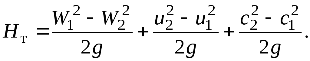 Подставим эту формулу в зависимость (4.9) и получим выражение теоретического напора через абсолютные скорости и их составляющие
