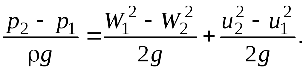 Отсюда разность пьезометрических напоров на выходе из колеса и на входе в него равна