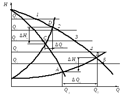 Точка 1 пересечения этих характеристик называется рабочей точкой; она отвечает наибольшей производительности насоса при его работе на данную сеть.