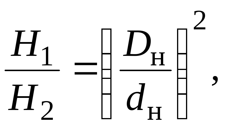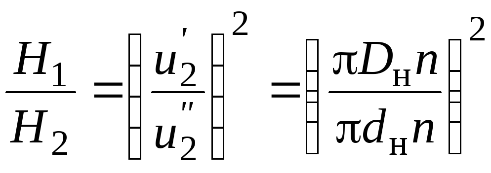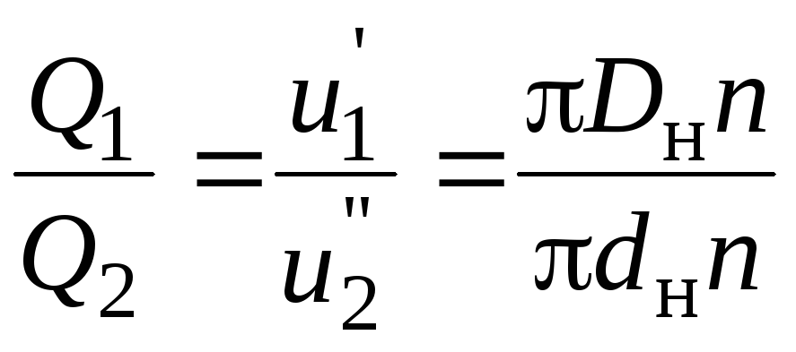где Dн и dн – наружные диаметры рабочего колеса до обточки и после обточки соответственно. Формула (4.14) показывает, что производительность насоса пропорциональна окружной скорости в первой степени: