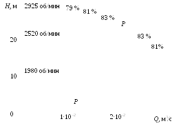 Знание характеристик Q – H насоса и сети необходимо также при выборе насоса. Выбранный насос работоспособен в том случае, если производительность и напор насоса в рабочей точке не меньше требуемых значений.