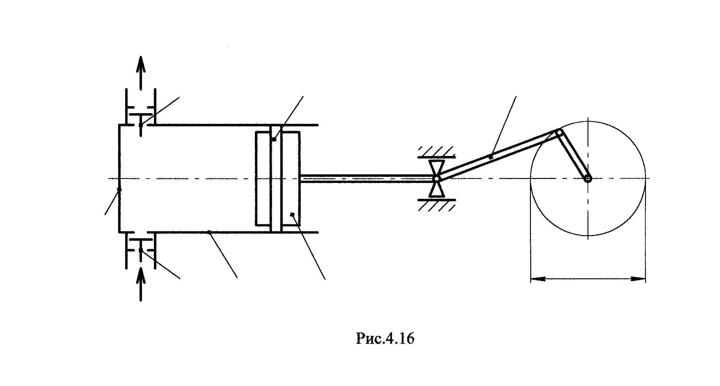 По числу всасываний (нагнетаний), осуществляемых за один оборот кривошипа, поршневые насосы делятся на насосы простого и двойного действия. У насоса, изображенного на рис. 4.16, за один оборот кривошипа совершается один акт всасывания и один акт нагнетания; такие насосы относят к насосам простого действия. Ниже на рис. 4.17 показан насос двойного действия, у которого за один оборот кривошипа (за два хода поршня) совершаются два акта всасывания и два акта нагнетания.