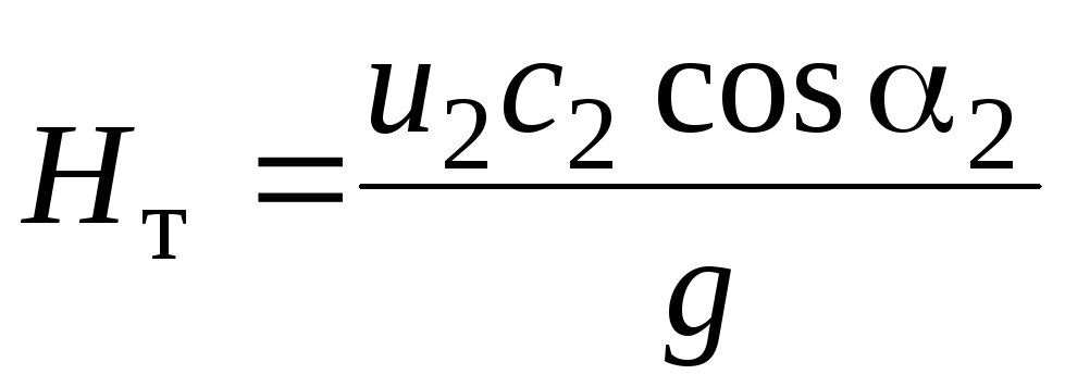 Напор, развиваемый осевыми насосами, можно определить по основному уравнению центробежного насоса Эйлера (4.11). Так, если жидкость поступает в насос без предварительной закрутки, то α1 = 90°, cosα1 = 0 и теоретический напор равен