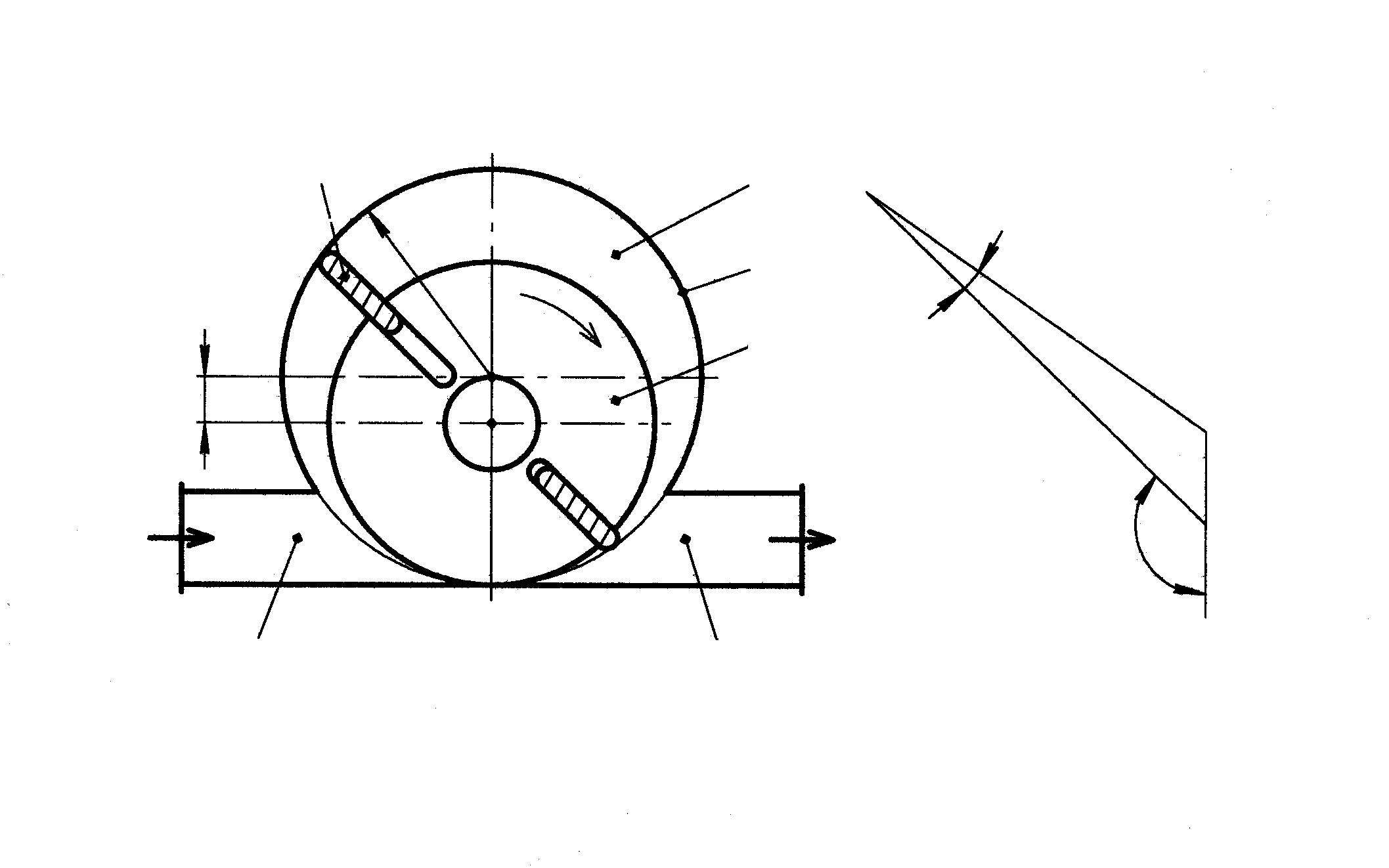 По виду рабочего органа шиберные насосы, наряду с шестеренчатыми и винтовыми, относят к роторным насосам (см. рис. 4.1). Рабочий орган роторных насосов совершает вращательное движение и вытесняет жидкость в нагнетательный трубопровод, поэтому роторные насосы являются насосами объемного типа. Основными частями роторного насоса являются: корпус (статор), ротор, вращающийся от ведущего вала, и вытеснители, вращающиеся вместе с ротором. Именно по конструкции вытеснителя роторные насосы подразделяют на шиберные, шестеренчатые, винтовые, шланговые и др. Роторные насосы конструируются в основном на средние производительности и относительно высокие давления. Устройство шиберного насоса схематично изображено на рис. 4.25. Насос представляет собой массивный цилиндр 1 с прорезями постоянной ширины (ротор), который эксцентрично расположен в корпусе 2. В прорези цилиндра вставляются прямоугольные пластины 3, которые при вращении ротора под действием центробежной силы прижимаются к внутренней поверхности цилиндра, разделяя на камеры серповидное рабочее пространство 4 между корпусом и ротором. Объем каждой камеры увеличивается при движении пластины от всасывающего патрубка 5 к вертикальной оси насоса, в результате чего происходит всасывание жидкости в насос через патрубок 5. При движении пластины от вертикальной оси в направлении вращения объем камеры уменьшается и жидкость вытесняется из насоса в нагнетательный трубопровод 6. За один оборот ротора каждая пластина участвует один раз во всасывании и один раз в нагнетании.