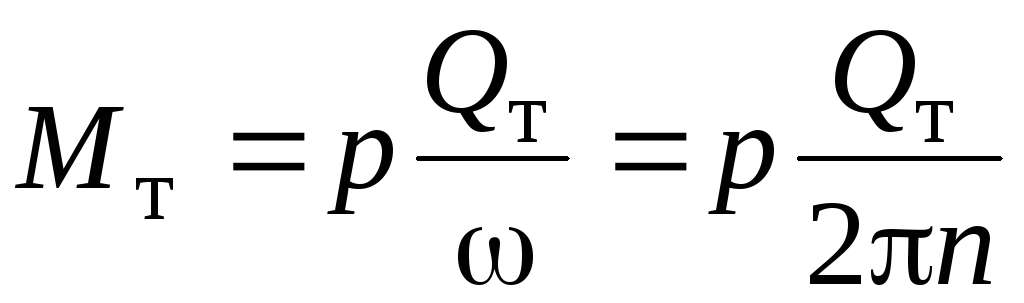 Установим некоторые характеристики гидропривода вращательного движения. Момент на валу гидромашины может быть определен в виде