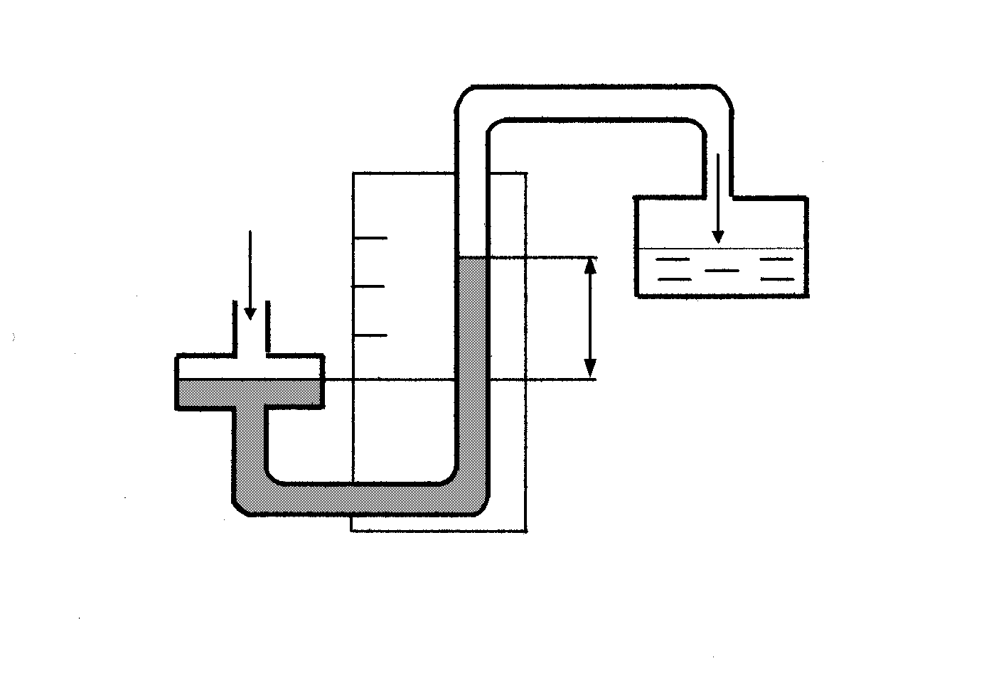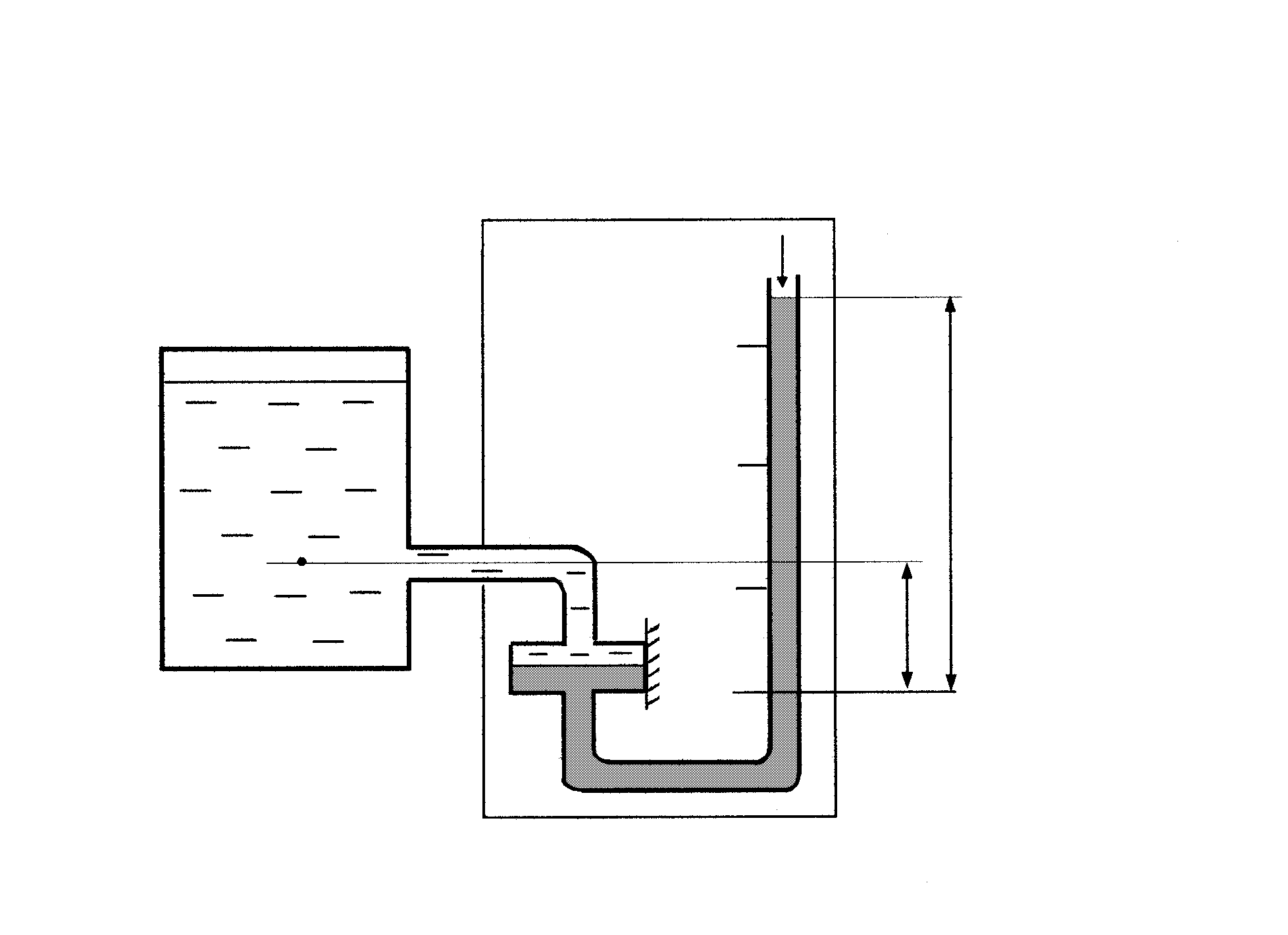 Пьезометры – это стеклянные трубки диаметром не менее 5 мм (при меньшем диаметре образуется заметный мениск, увеличивающий погрешность измерения). Нижний конец пьезометра соединяется с той областью, в которой необходимо измерить давление, а верхний конец трубки должен сообщаться с атмосферой. Трубка имеет измерительную шкалу, по которой производят отсчет деления. При подключении пьезометра к области измерения давления, жидкость в нем поднимается на определенную высоту hp, которая называется пьезометрической высотой (рис. 2.6). Измерив величину hp можно оп-