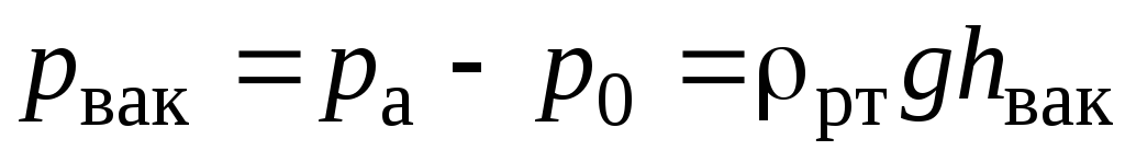 ртути в чашке, определим величину вакуума