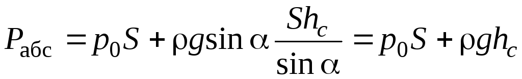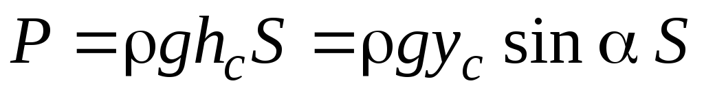 Итак, сила абсолютного давления на плоскую фигуру выражается произведением площади фигуры на величину абсолютного давления в ее центре тяжести, а сила гидростатического давления равна произведению площади фигуры на величину гидростатического давления в ее центре тяжести.