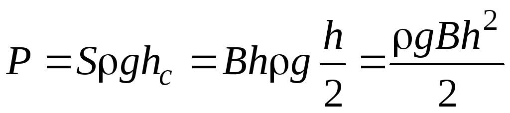 Пример 1. Плоский затвор высотой h и шириной В поддерживает жидкость в открытом водоеме, глубина которого перед затвором также paвна h (рис. 2.13). Определить силу гидростатического давления и точку ее приложения.