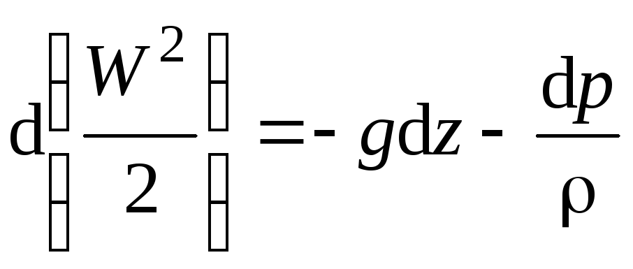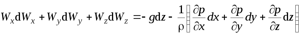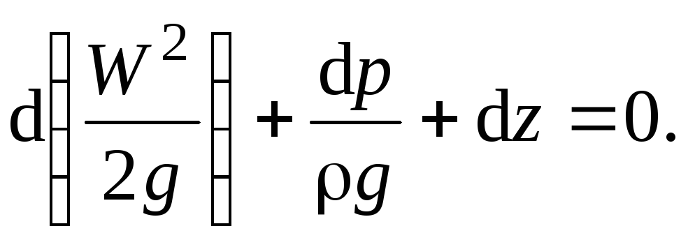 Уравнение Бернулли для идеальной жидкости получается решением уравнений движения Эйлера (3.10) для установившегося потока. Для этого умножим левую и правую части каждого из уравнений (3.10) соответственно на dx, dy, dz и разделим на плотность жидкости ρ. Получим