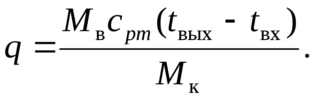 Величина q может быть найдена по данным о нагревании охлаждающей воды, ее массовом расходе и массовом расходе конденсата: