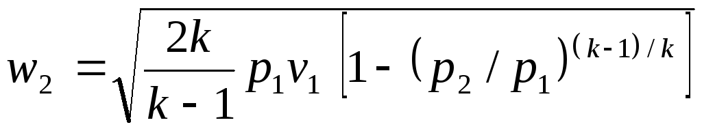 где k – показатель адиабаты; v1 – удельный объем газа перед соплом, м3/кг; р1, р2 –давление газа до и после сопла, Па.