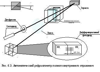 На рис. 6.2 и 6.3 показаны принципиальные схемы автоматиче-ского рефрактометра полного внутреннего отражения лабораторного и промышленного применения.