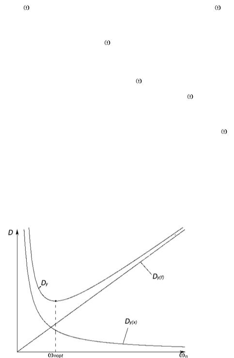 Очевидно, что в идеальном случае, когда имеется вся необходимая информация о случайных воздействиях, задача синтеза системы в области частотных характеристик сводится к определению оптимальной полосы пропускания системы п opt (см. рис. 6.3), обеспечивающей минимум величины Dy. При наличии же ограниченной